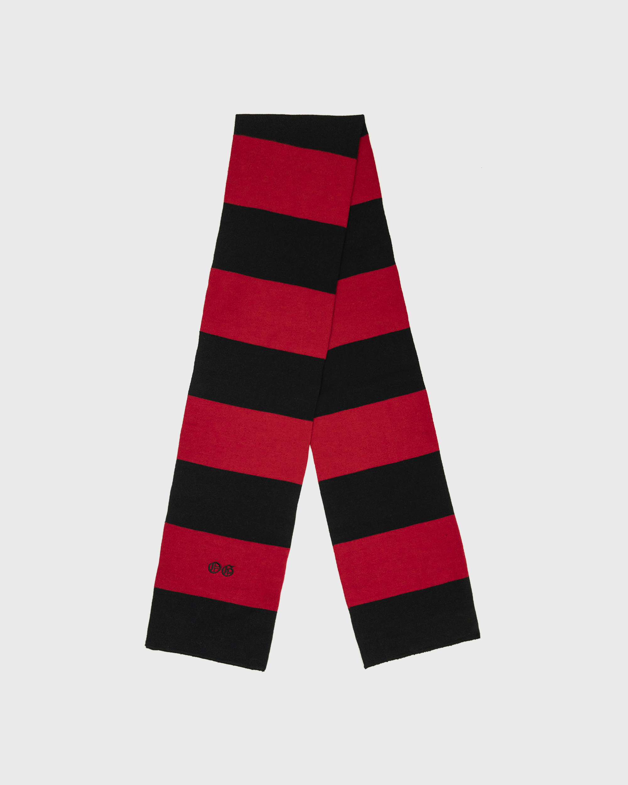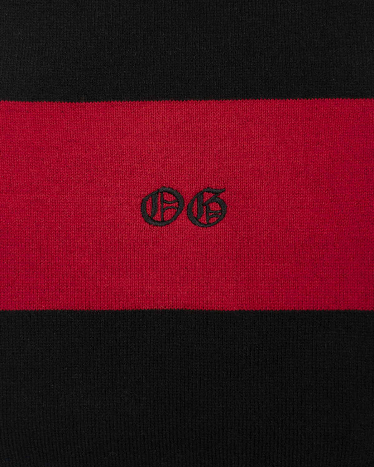 Black and Red Stripped scarf with a “OG” design.