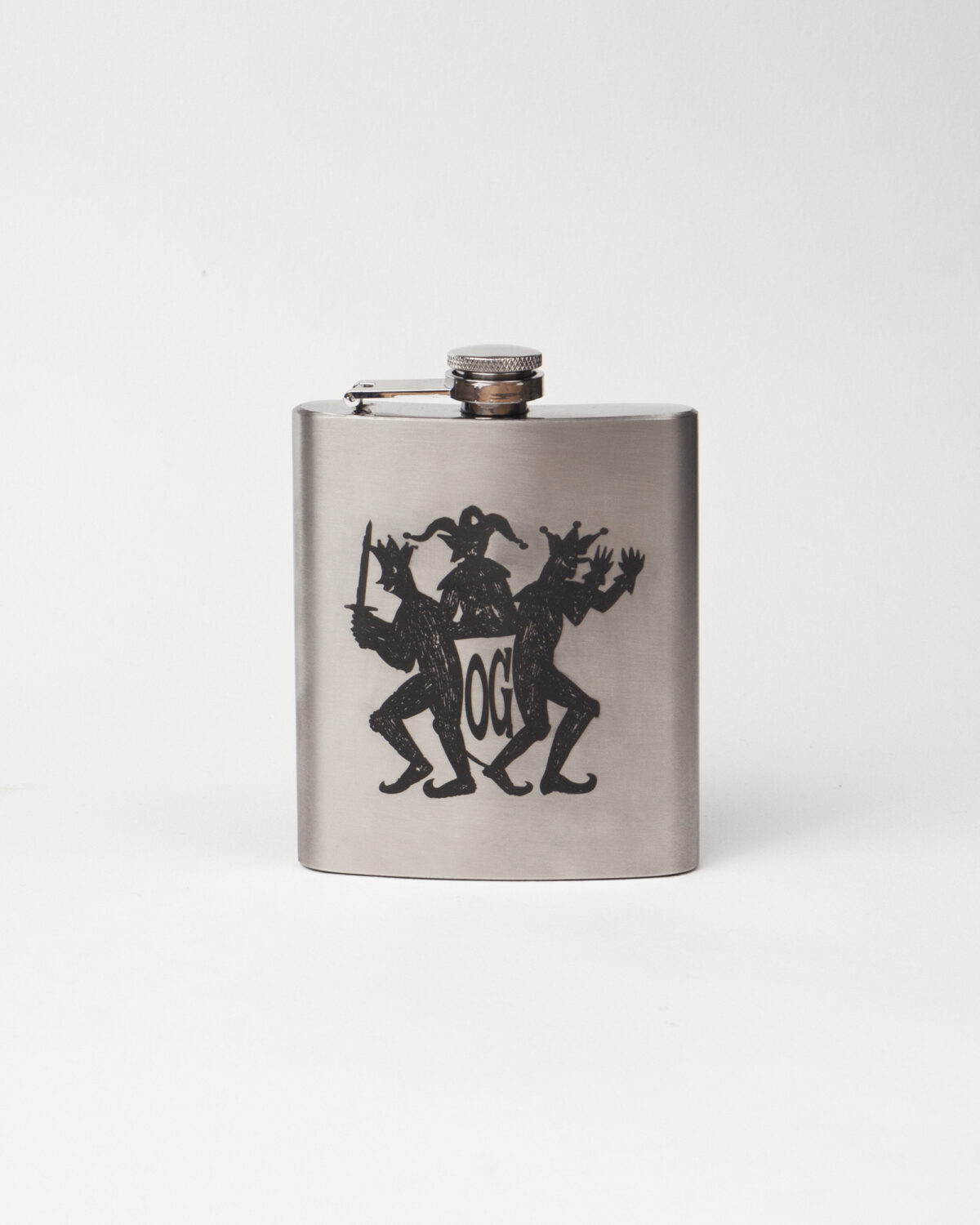 Stainless Stell Flask with engraved “TRIO” design.