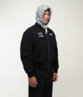 Blue and Melange Hoodie with a “ПРОДАМ ХУДІ” design printed at front in White color. Asphalt texture printed all over the hood in Black color.