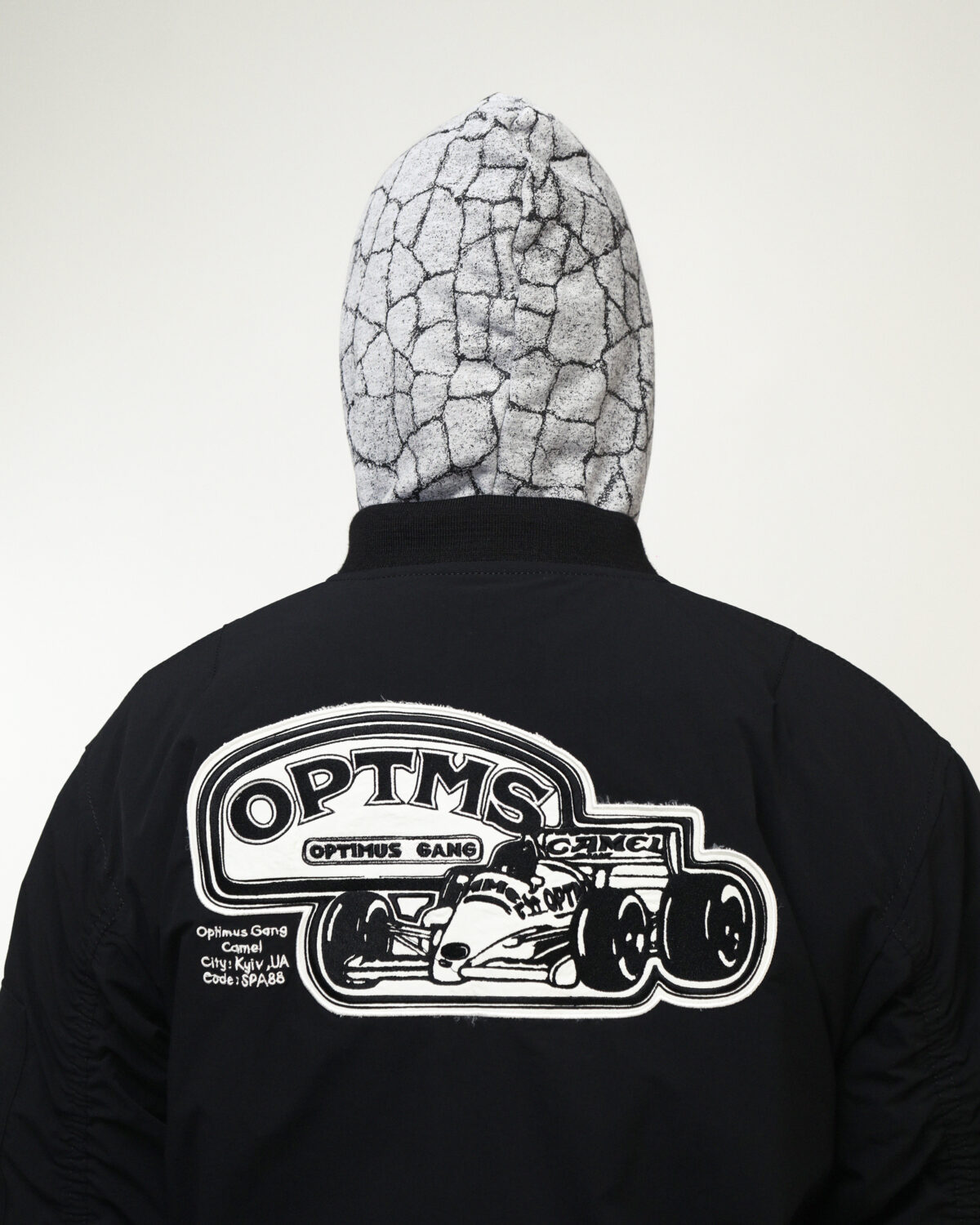 Black MA-1 Jacket with a “САМЕЦ” design. Embroidering at the chest in White color. Huge “САМЕЦ” appliqués embroidered at the back in Black and White colors.