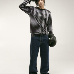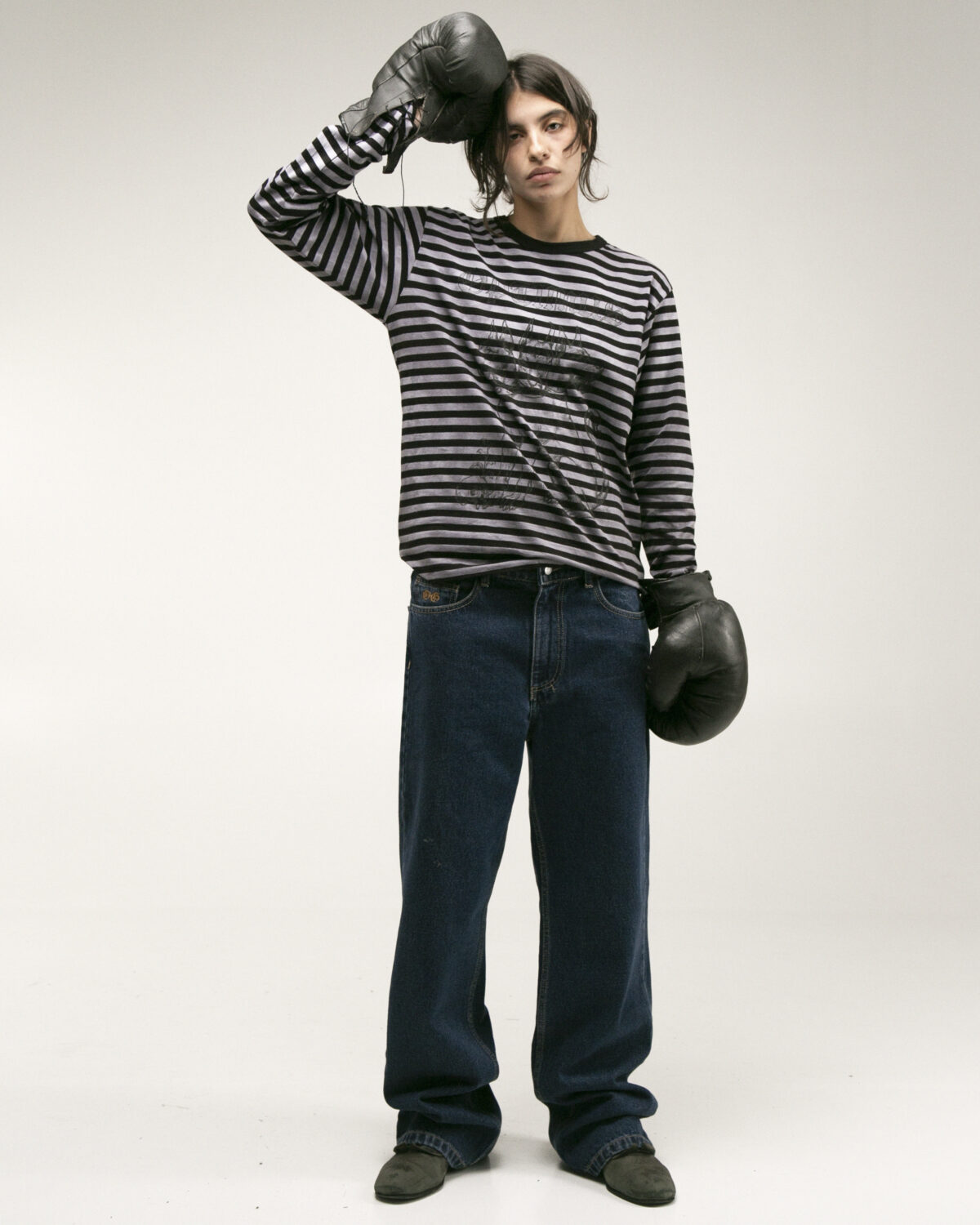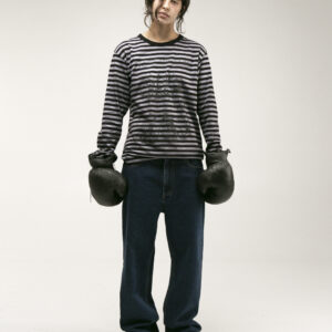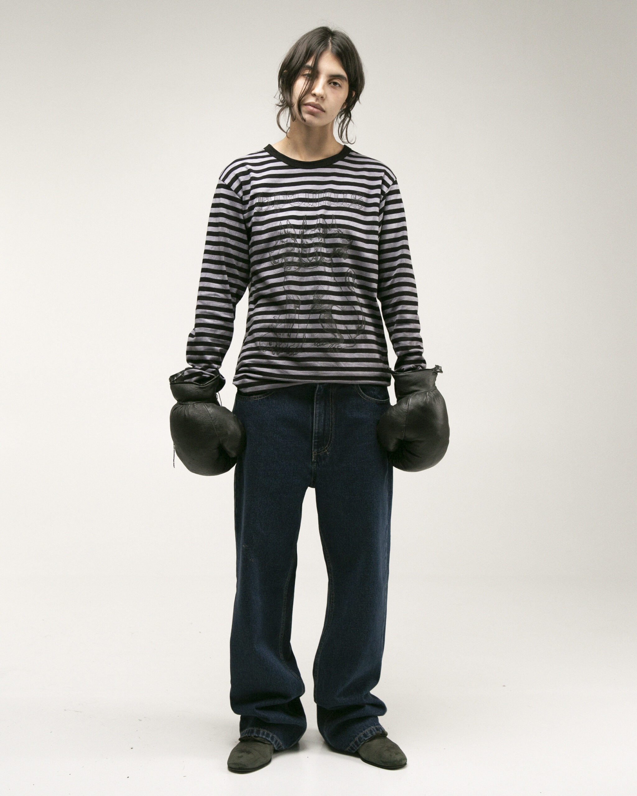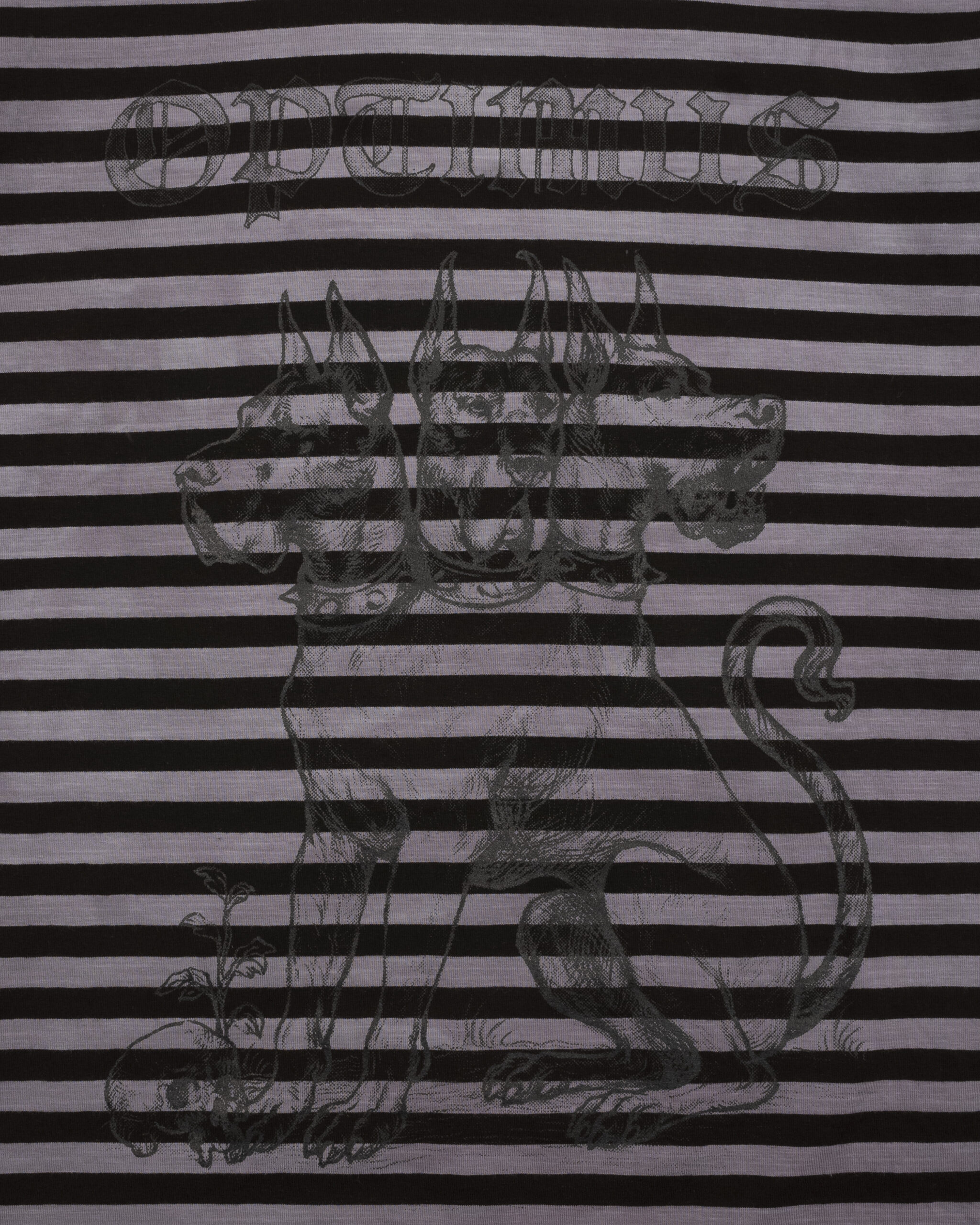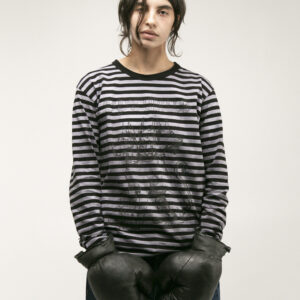 Black and Grey Overdyed Long Sleeve T-Shirt with a “CERBERUS” design printed at front in Black color.