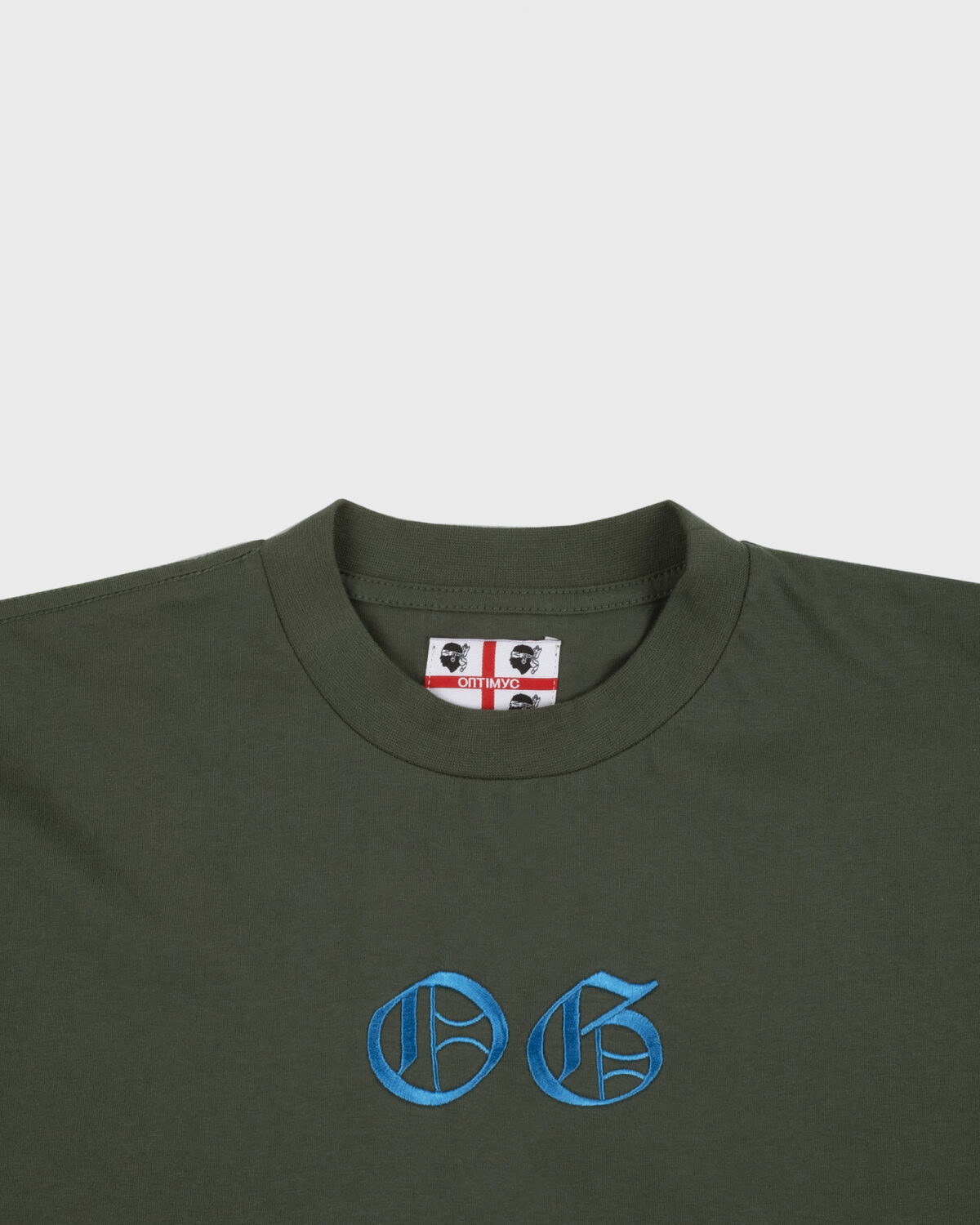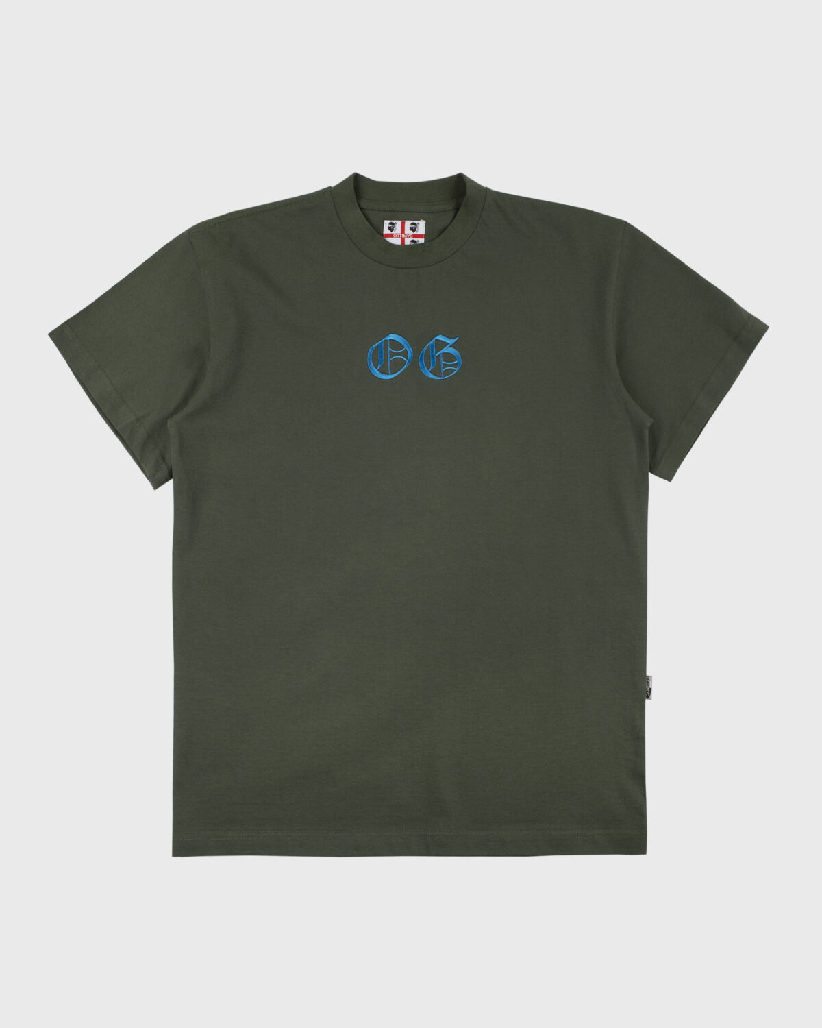 Olive T-Shirt with a “КЛАСИКА” design at front in Blue color.