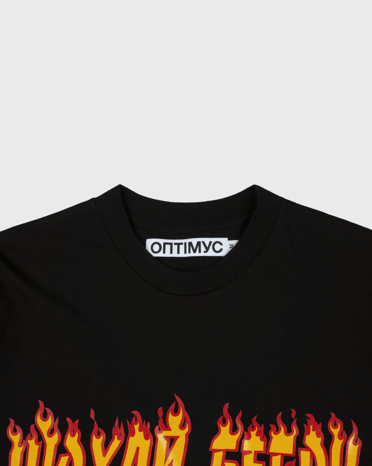 Black T-Shirt with a “НЮХАЙ БЕБРУ” design printed at front in Yellow and Red colors.