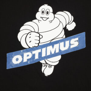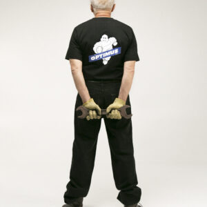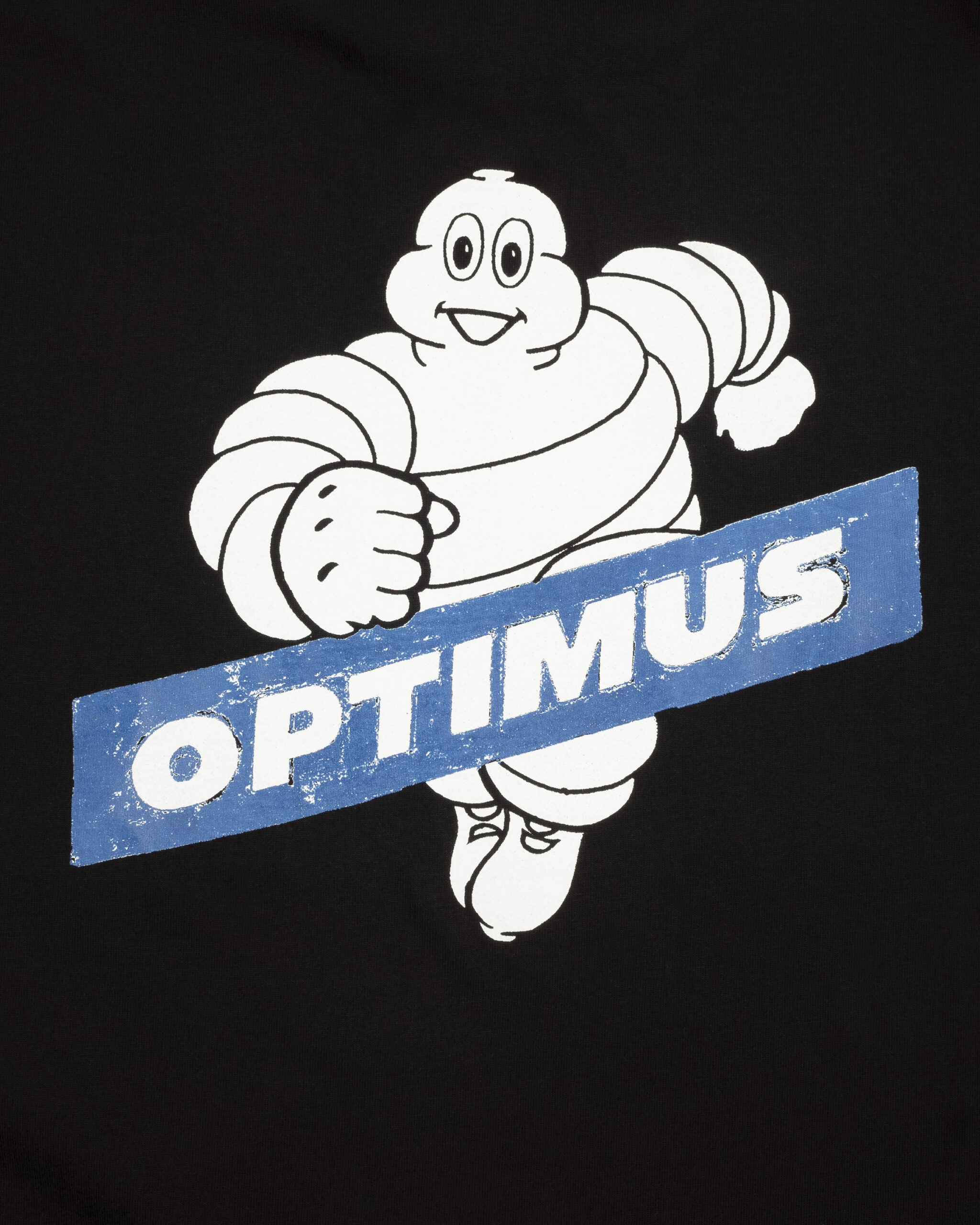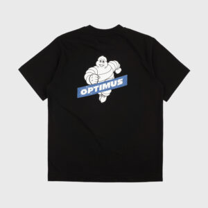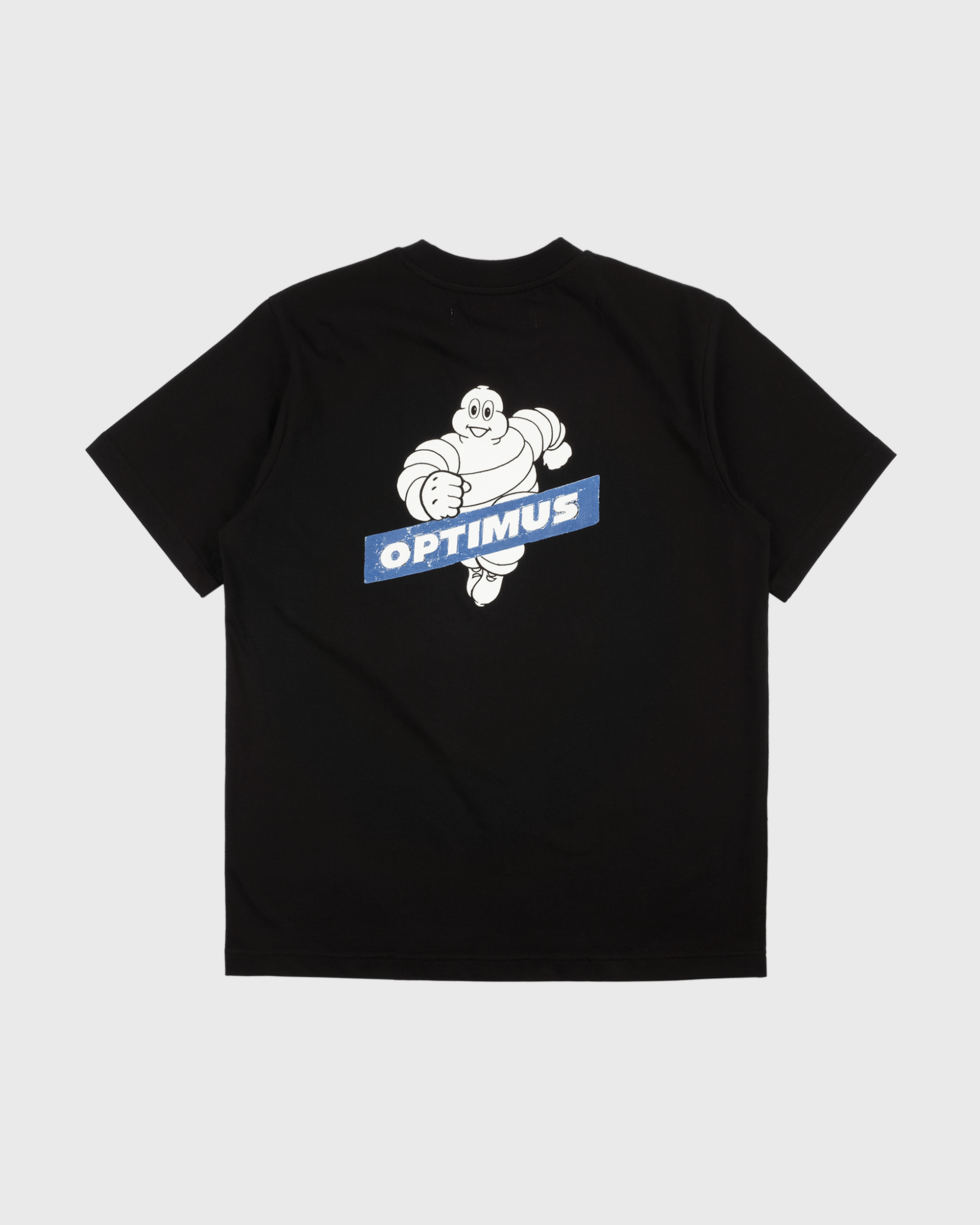 Black T-Shirt with a “MICHELIN” design at chest and at back printed in Mixed colors.
