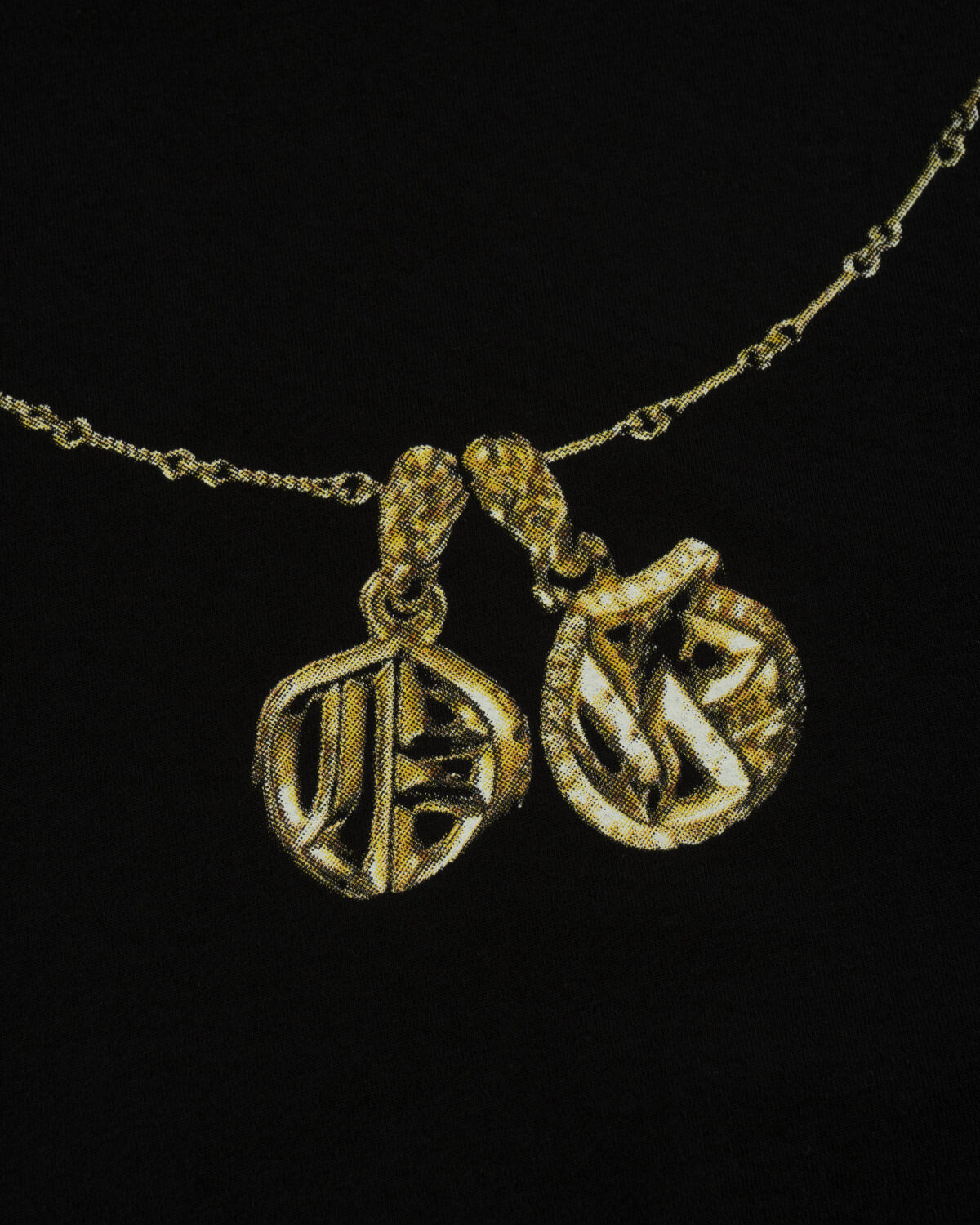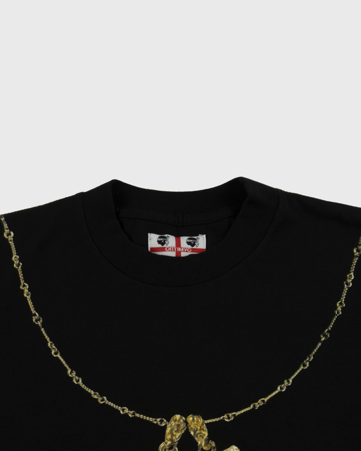 Black T-Shirt with a “RAP” design printed in Gold color at front with a Trompe-l’oeil effect.