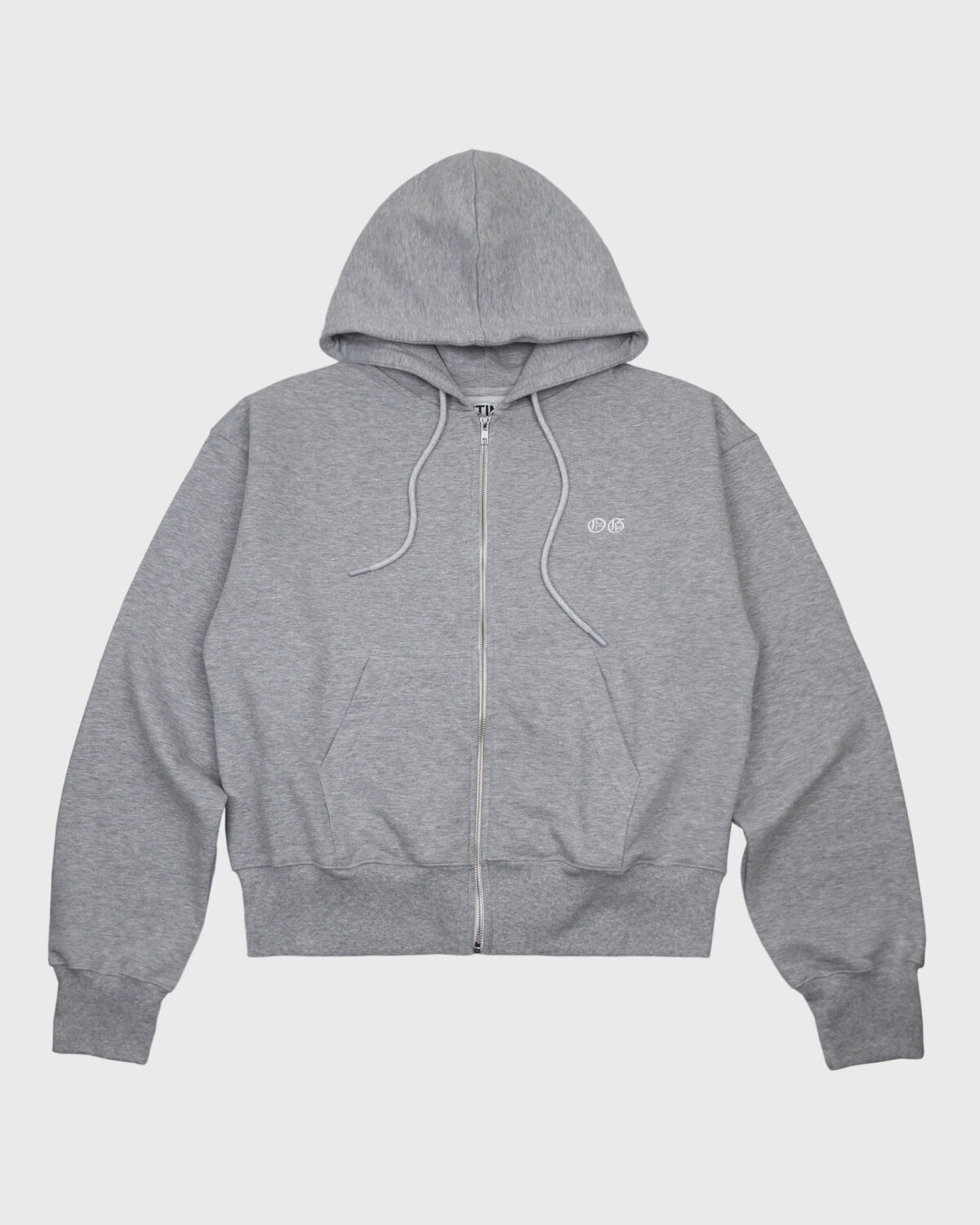 Melange Zip Hoodie with a classic “OG” design at chest in White color.