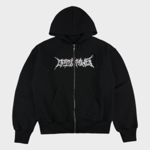 Black Zip Hoodie with a “ЗВУК” design at chest in White color.