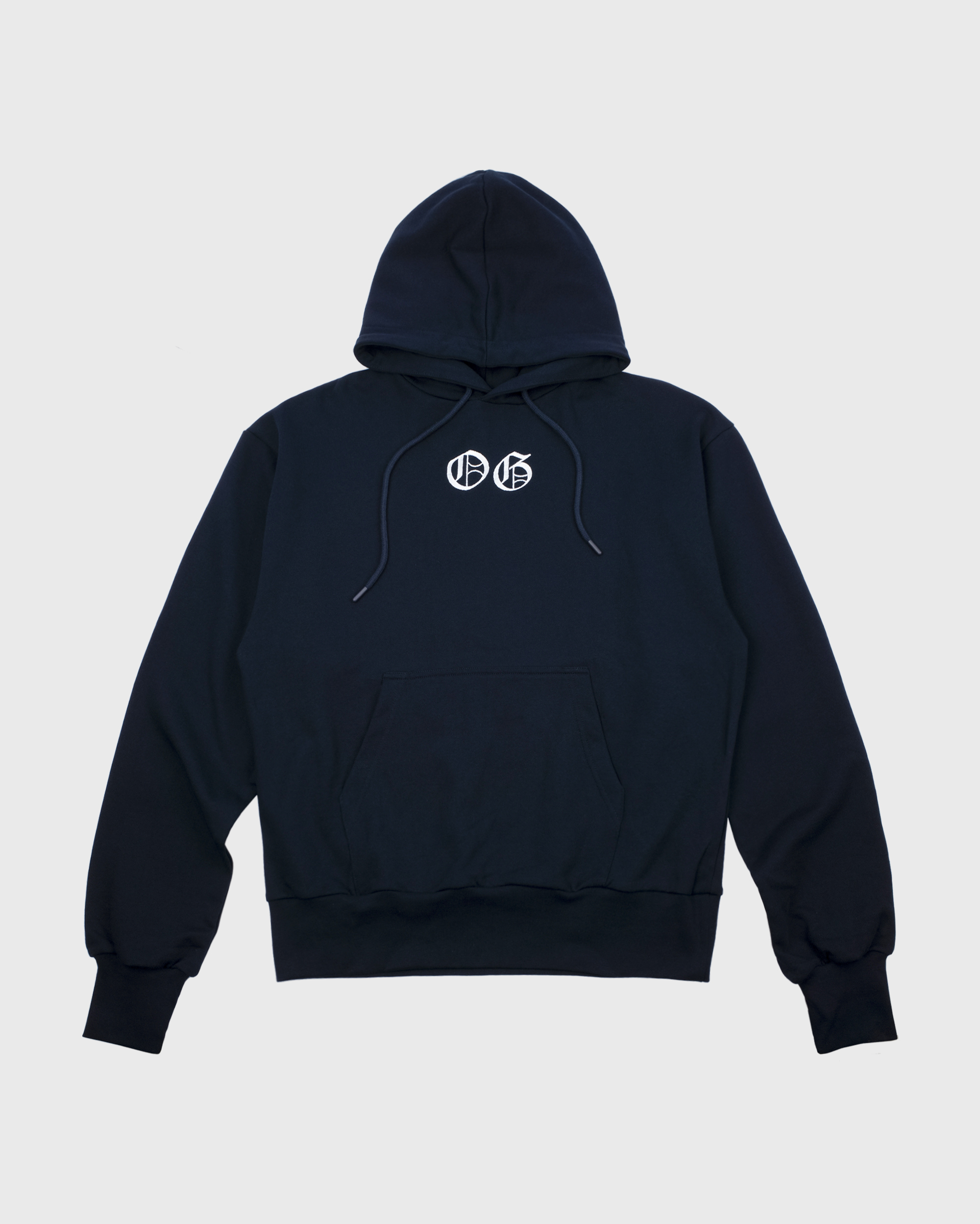Navy Hoodie with a classic “OG” design at front in White color.
