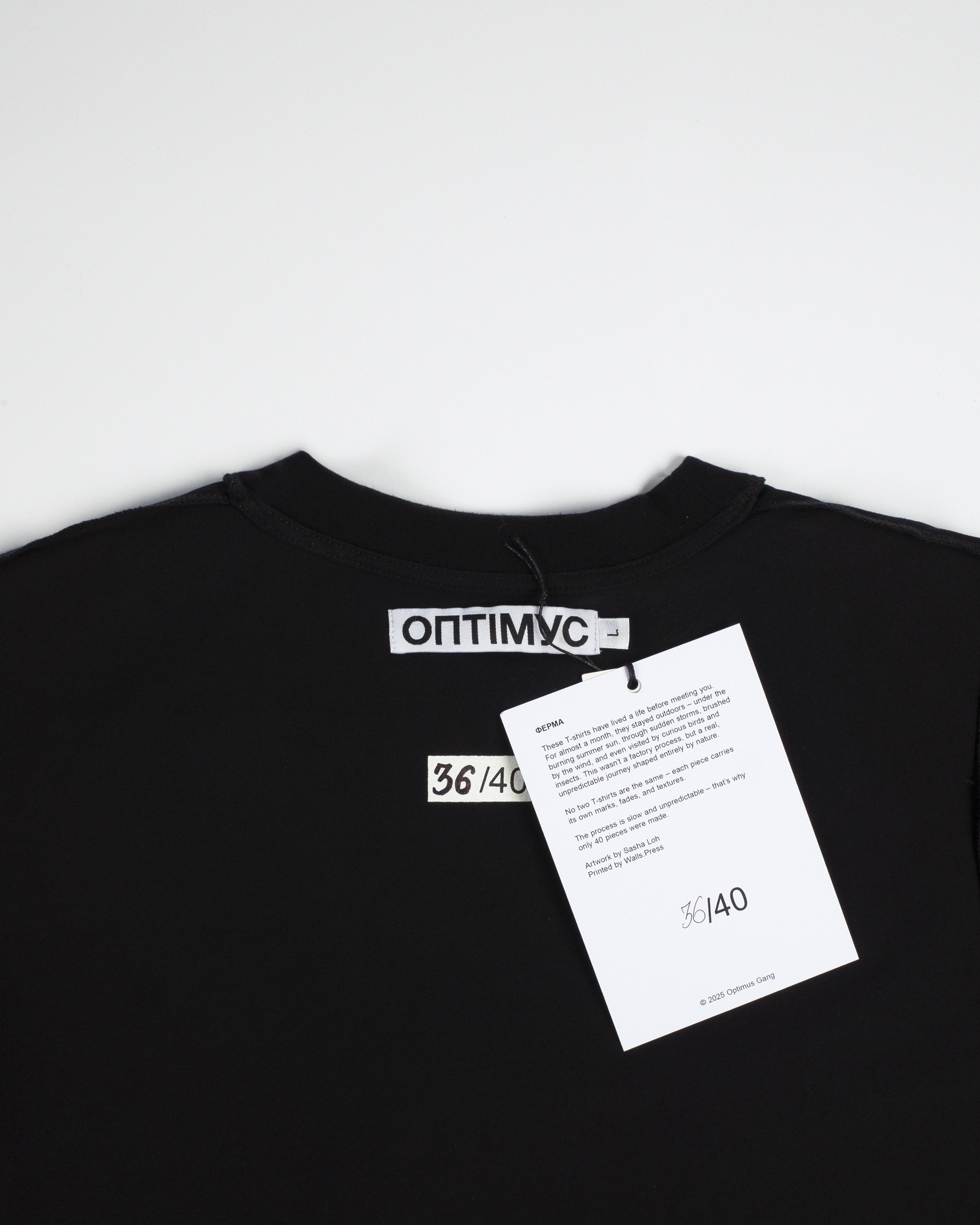 Black T-Shirt with a “ФЕРМА” design printed at front in White color.