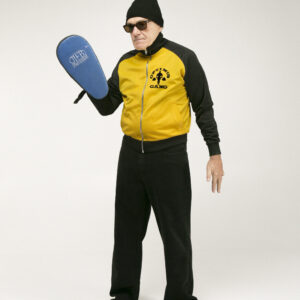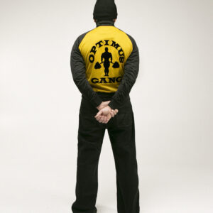 Black and Yellow Track Top with a “PEEK-A-BOO” design. “GYM” design printed at front and at back in Black color.