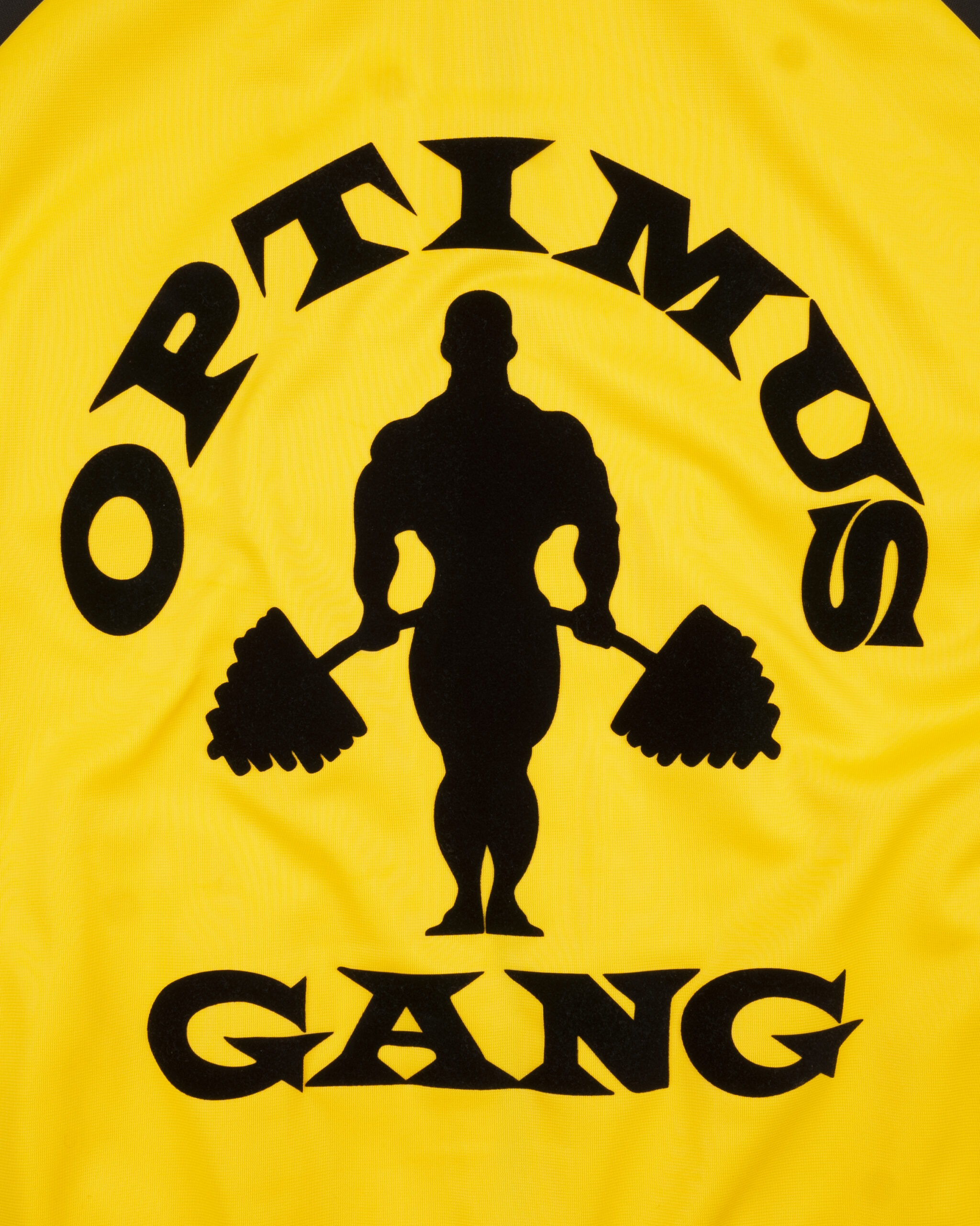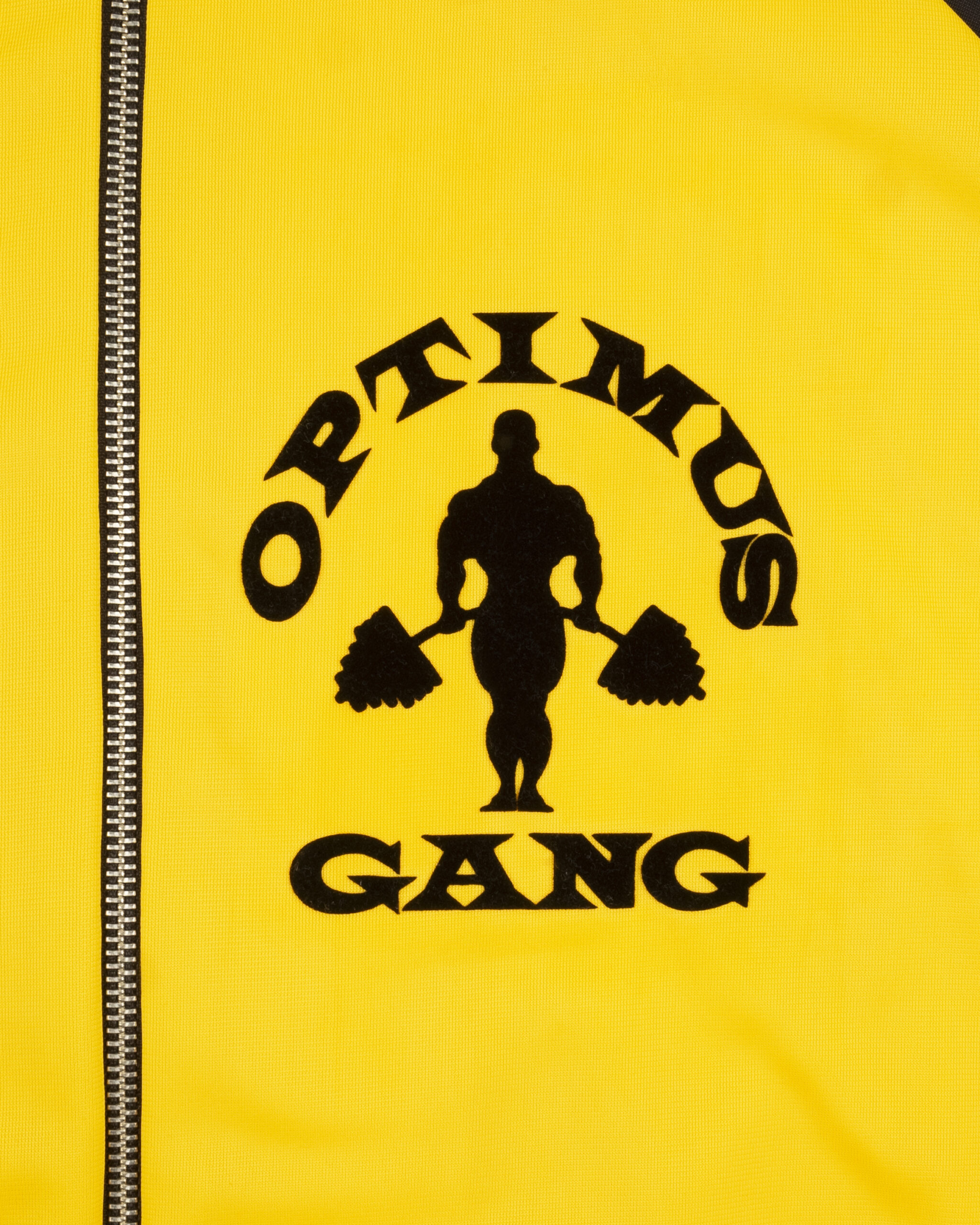 Black and Yellow Track Top with a “PEEK-A-BOO” design. “GYM” design printed at front and at back in Black color.