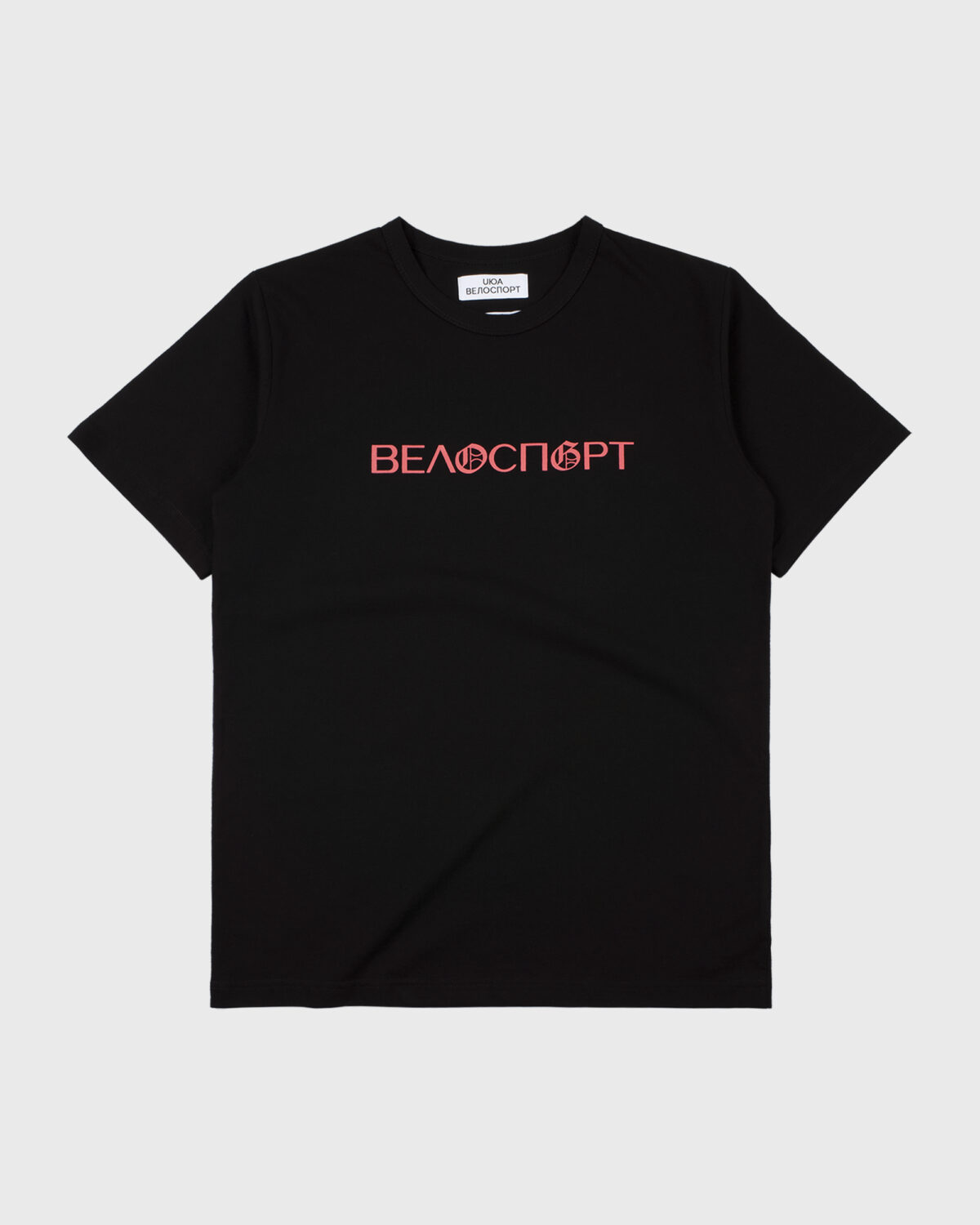 Чорна Футболка з дизайном “ВЕЛОСПGPT” попереду в Рожевому кольорі.